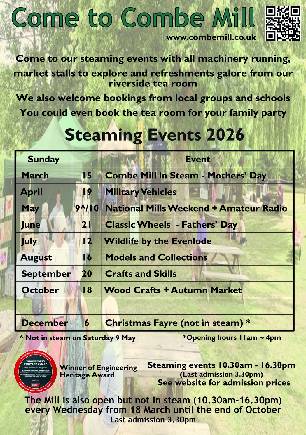 Combe Mill Events for 2026